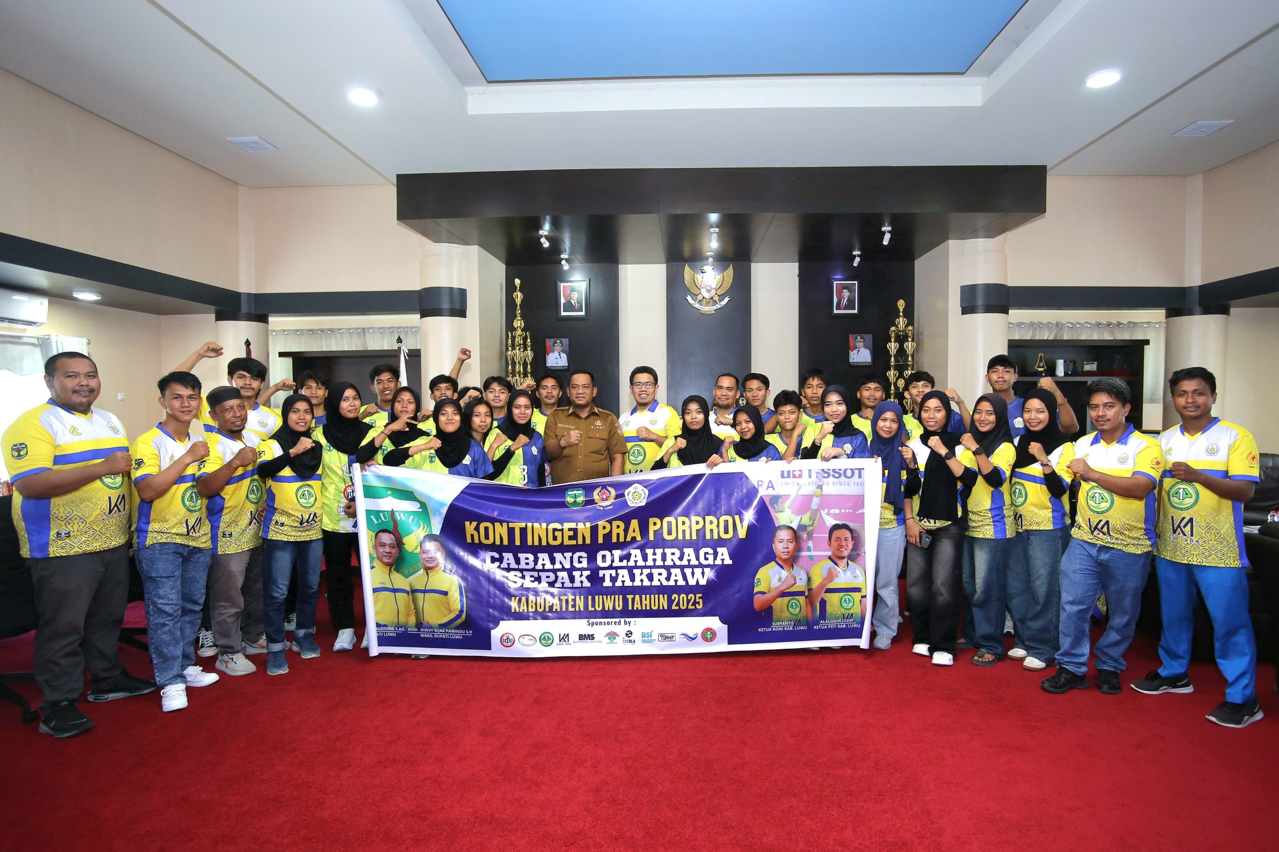 POROSCELEBES.COM. Bupati Luwu, Patahudding, secara resmi melepas kontingen sepak takraw Kabupaten Luwu yang akan berlaga dalam babak kualifikasi Pra-Pekan Olahraga Provinsi (Pra-Porprov) Sulawesi Selatan di Kabupaten Luwu Utara. Acara pelepasan berlangsung di ruang kerja Bupati Luwu, Belopa, Selasa (21/10/2025).