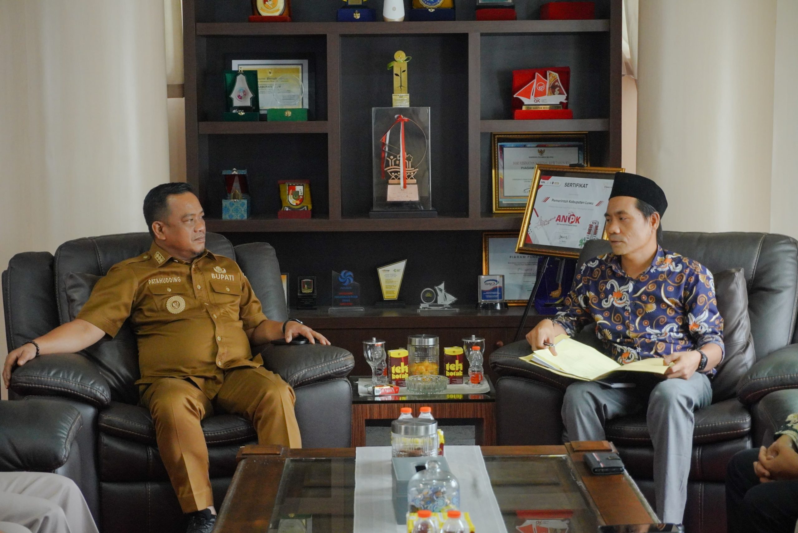 POROSCELEBES.COM. Bupati Luwu, H. Patahudding, menerima audiensi Komisi Pemilihan Umum (KPU) Kabupaten Luwu di ruang kerjanya, Kantor Bupati Luwu, Selasa (21/10/2025). Pertemuan tersebut membahas permohonan penerbitan surat edaran terkait sosialisasi layanan Pemutakhiran Data Pemilih Berkelanjutan (PDPB).