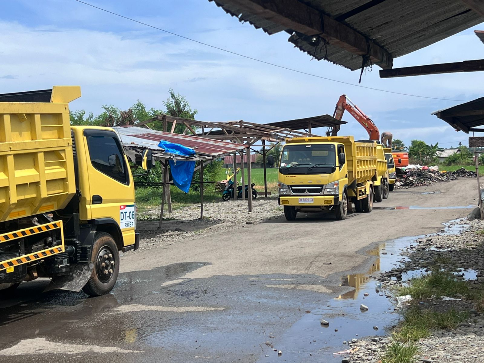 Armada milik PT BMS kembali dikerahkan untuk memuat dan mengangkut sampah hasil pembersihan menuju tempat pembuangan yang telah ditentukan.