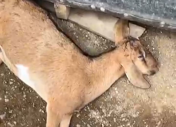Kambing itu ditemukan warga di dekat los Pasar Larompong, Minggu (28/12/2025) sekitar pukul 12.30 Wita siang.