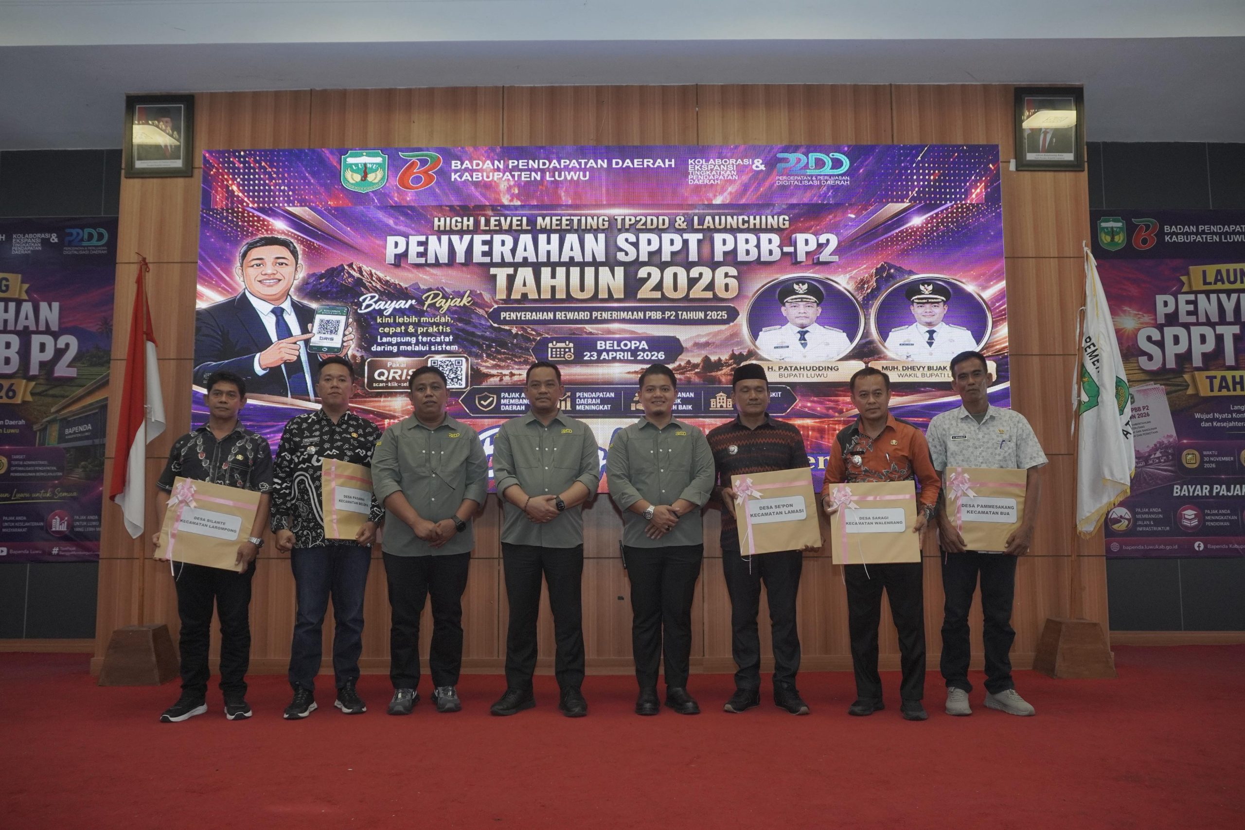 POROSCELEBES.COM, LUWU – Pemerintah Kabupaten Luwu terus mendorong optimalisasi pendapatan daerah melalui strategi ekstensifikasi pajak. Hal ini mengemuka dalam High Level Meeting Tim Percepatan dan Perluasan Digitalisasi Daerah (TP2DD) yang dirangkaikan dengan launching penyerahan SPPT PBB-P2 Tahun 2026, Kamis (23/4/2026), di Aula Andi Kambo, Kompleks Perkantoran Bupati Luwu.