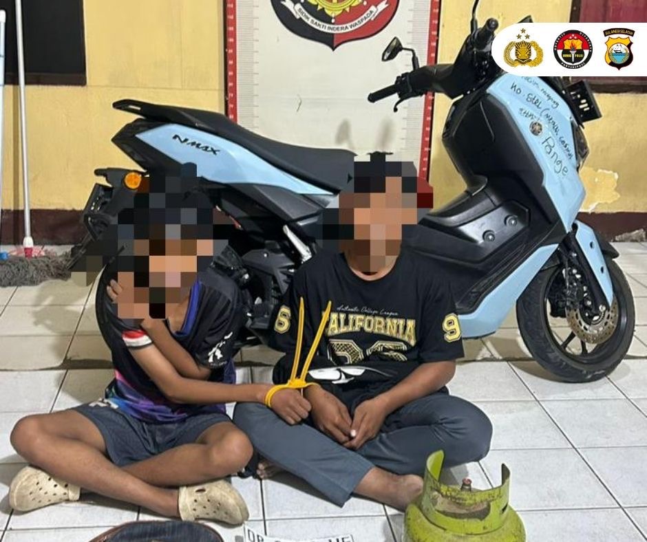Barang bukti yang diamankan antara lain satu unit sepeda motor Yamaha Nmax warna biru navy tanpa plat nomor, satu tabung gas LPG 3 kilogram, dua buah alat congkel, dua buah gembok rusak, satu obeng, serta satu tas ransel berwarna hitam cokelat.
