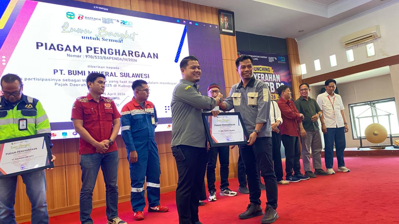 POROSCELEBES.COM, LUWU – PT Bumi Mineral Sulawesi (BMS) menerima penghargaan dari Pemerintah Kabupaten Luwu atas ketaatan dan kepatuhan dalam memenuhi kewajiban perpajakan daerah.