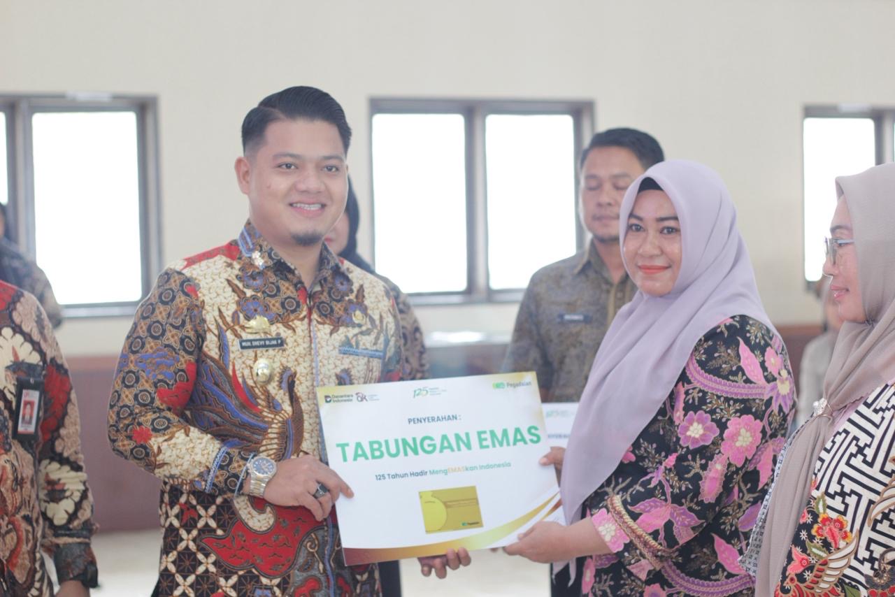 Kegiatan ini juga dirangkaikan dengan penyerahan Tabungan Emas kepada pelaku UMKM sebagai bentuk dukungan dalam memperluas akses keuangan yang inklusif dan produktif.